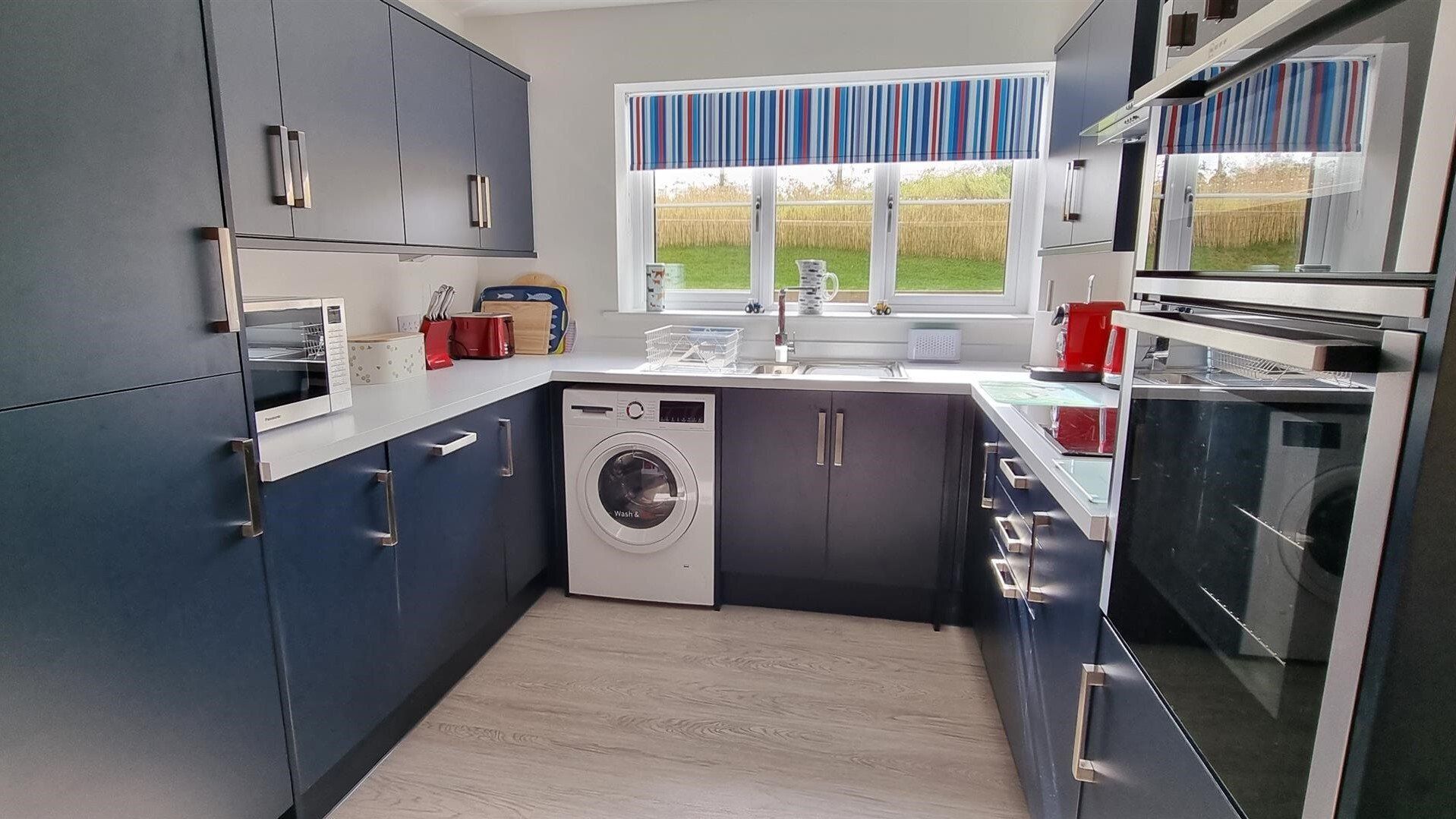 The kitchen is fully equipped with NEFF double oven, Bosch induction hob, Bosch washer/dryer, integrated dishwasher and full height fridge/freezer.